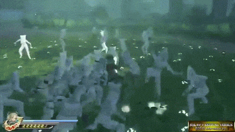 This move remains largely the same from its previous game. It does, however, have notable differences. Imu moves about in sporadic directions, trapping enemies within streams of lightning. She finishes it off by slamming her staff int the ground, sending enemies flying.