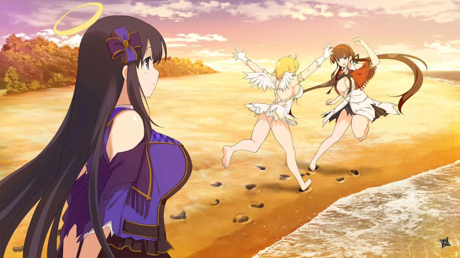 Ryōna interrupts them and tells them to go for the stroll they originally planned, smiling brightly as she runs along the shore, and waving at her once she gets to the surf. Ryōki thinks that when she is out here in the warm sun on the beach, she feels alive almost enough to forget that she died already.